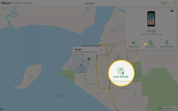 ميزة وضع الفقدان “Lost Mode” هو خيار آخر في أداة Find My iPhone، يتيح لك قفل شاشة الهاتف المسروق وتعيين كلمة مرور جديدة. هذه خاصية رائعة لمنع السارق من فتح هاتفك والحصول على بياناتك الشخصية. يمكنك أيظاً من هذا الخيار إضافة رقم هاتفك إذا أردت أن يتعرف عليه الشخص الذي لديه هاتفك. كما يمكنك كتابة رسالة ستظهر على شاشة الجهاز.