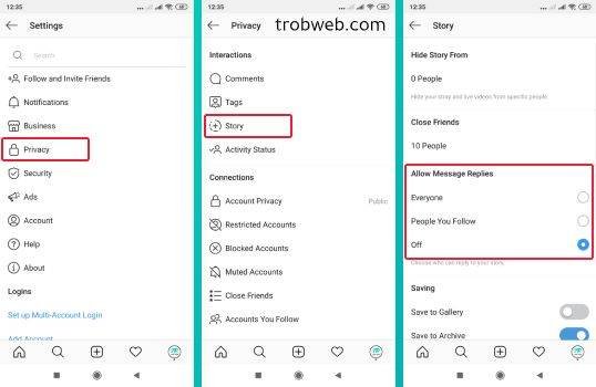 – تعطيل “Off” : إلغاء وإخفاء ميزة الرد على ستوري انستقرام بشكل كلي وبدون استثناء.