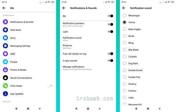 كيفية تغيير صوت استقبال رسالة على فيسبوك ماسنجر من إعدادات التطبيق