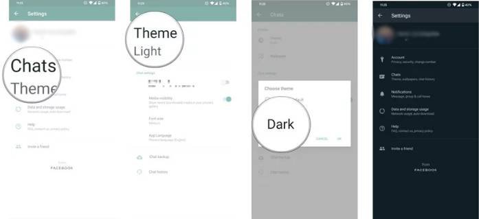 6. وأخيراً قم بتحديد Dark، وسوف ترى واجهة واجهة واتس اب بمظهر مظلم.