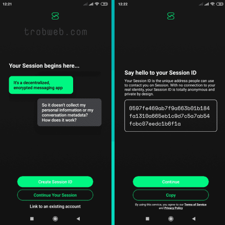 بالنسبة لكيفية انشاء حساب Session واستخدامه، الأمر جد سهل وسريع، في ثوان معدودة يمكنك إنشاء حساب، من أجل التوضيح إليك الخطوات أسفله.