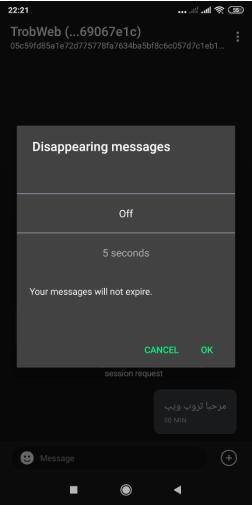 اختفاء الرسائل تلقائياً : يمكنك تخصيص وقت اختفاء الرسالة التي ترسلها بعد مدة معينة في حالة عدم قرائتها من المرسل إليه. يمكنك استخدام هذه الميزة حتى في تطبيق واتس اب، إليك كيف ذلك.
