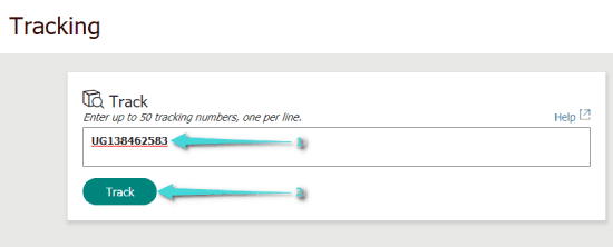 - في خانة “Track”، قم بإدخال رقم التتبع الذي حصلت عليه عند الشحن. ثم بعد ذلك انقر على زر Track.