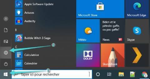 انقر على قائمة إبدأ ثم ادخل إلى الإعدادات عبر النقر على أيقونة الترس الموجودة في اليسار. أو بدلا من ذلك، يمكنك استعمال اختصار لوحة المفاتيح Windows + i للدخول إلى الإعدادات مباشرة.