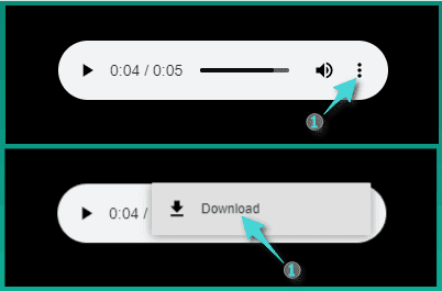 لتنزيل الرسالة الصوتية، انقر على زر Download الموجود أسفلها، سوف يؤدي هذا إلى فتح المقطع الصوتي في نافذة أخرى. ما عليك سوى النقر على خيار الثلاث نقاط ثم اضغط على زر Download وسوف يتم تنزيل مقطع الصوت على جهازك.