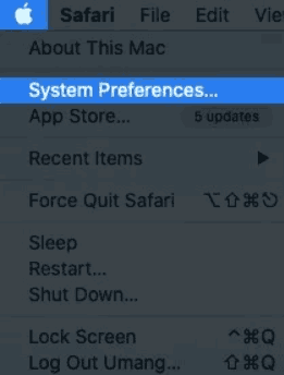 ضمن شريط المهام على شاشة الماك، انقر على أيقونة Apple، ثم من القائمة التي تظهر حدد تفضيلات النظام “System Preferences”.