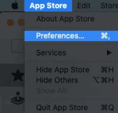 قم بفتح App Store من خلال Mac Dock. ثم بعد ذلك انقر على خيار App Store في الشريط العلوي، وحدد التفضيلات “Preferences” في القائمة التي تظهر.