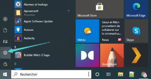 ادخل إلى الإعدادات من خلال النقر على قائمة إبدأ ثم الضغط على أيقونة الترس التي تظهر فوق رمز إيقاف تشغيل الجهاز.
