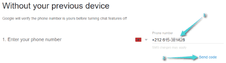 افتح متصفح الويب وادخل إلى صفحة إلغاء تنشيط الدردشة في خدمة Messages. مرر للأسفل إلى قسم بدون جهازك السابق (Without Your Previous Device). أدخل رقم هاتفك في الخانة ثم انقر على زر إرسال الرمز “Send Code”.