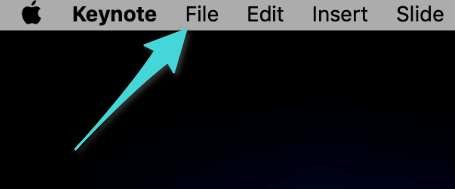 قامت آبل بتسهيل عليك الانتقال من بوربوينت إلى Keynote عبر إيتاح فتح ملفات PPTX مباشرة في Keynote. للبدأ، قم بفتح Keynote على جهازك الماك، ثم اضغط على خيار ملف “File” في شريط المهام.