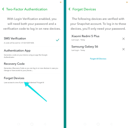 هذه الميزة تستوجب تفعيل المصادقة الثنائية لتتمكن من معرفة من يقوم بفتح حسابك سناب شات. وأعتقد أنه بعد تمكين المصادقة الثنائية باستخدام رقمك أو تطبيق مصادقة، من الصعب جداً أن يقوم شخص ما بتسجيل الدخول حسابك سناب شات. ولكن من أجل إزالة الشك، يمكنك التأكد من ذلك عبرة الميزة التي تتيحها لك سناب شات، إذ أن هذه الأخيرة تقوم بتسجيل إسم جهاز أي شخص قام بتسجيل الدخول إلى حسابك. راجع مقالنا حول كيفية معرفة هل فتح شخص ما حسابك سناب شات.