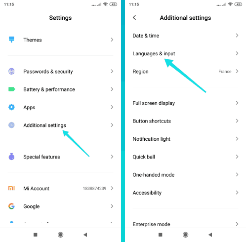 بعد تثبيت التطبيق على جهازك الأندرويد، سوف نقوم بتعيين الكيبورد للاستخدام على الجهاز. لذلك، ادخل إلى الإعدادات “Setting”، ثم انقر على النظام “System” (في بعض الهواتف تنقر على إعدادات إضافية “Additional Settings”)، بعد ذلك اضغط على خيار اللغات والإدخال “Languages & input”.