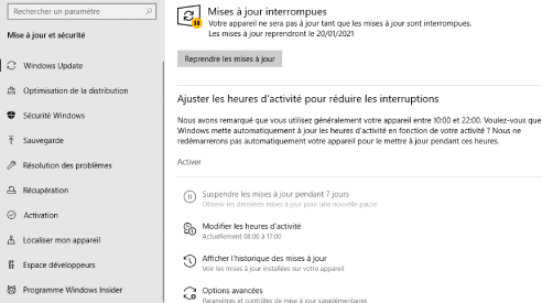 ملاحظة : عند انتهاء فترة إيقاف التحديث، سيقوم ويندوز بتنزيل التحديثات وتثبيتها إذا أتيحت بشكل تلقائي قبل أن يتيح لك إيقاف التحديث مجدداً.