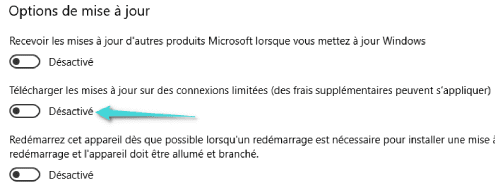 يمكنك أيظاً الوصول الوصول إلى تحكم متقدم في التحديثات من خلال وضع علامة على أن اتصالات الإنترنت لديك محدودة. هذا الخيار مخصص للاتصالات التي لديك فيها سعة بيانات محدودة.