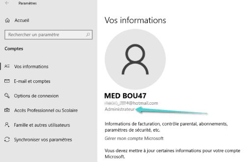إذا كنت تمتلك جهازك كمبيوتر يعمل بنظام الويندوز ولم تتم إدارته من مكان العمل أو شيء من هذا القبيل، فمن المحتمل أنك تستخدم حساب مسؤول. (يمكنك التحقق من ذلك عبر الدخول إلى الإعدادات “Settings” > الحسابات “Accounts” > معلوماتك “Your Info”. سوف ترى إسم مسؤول “Administrator” أسفل إسم حسابك إذا كنت طبعاً مسؤول. أما إذا كنت تتوفر على حسابات أخرى في نفس الجهاز وتريد التحقق عما إذا لديهم صلاحية المسؤول أم لا، من نفس المكان انقر على قسم العائلة والمستخدمون الآخرون “Family & other users” في القائمة الجانبية، وسوف تتأكد من ذلك.