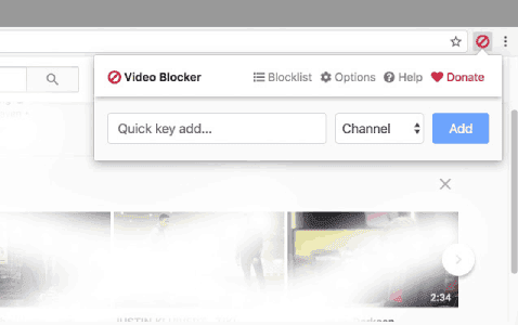 تتيح لك بعض من إضافات المتصفح مزيداً من الخيارات في التحكم بالفيديوهات التي تظهر على يوتيوب. إذا كنت لا تريد أن يظهر فيديو معين على موقع يوتيوب على الويب، يمكنك استخدام إضافة Video Blocker التي يمكنك استخدامها على كل من جوجل كروم، مايكروسوفت إيدج، وموزيلا فايرفوكس، وغيرها من متصفحات المبنية على Chromium.