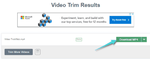انتظر بعض الثواني حتى ينتهي من عملية القص. بمجرد الانتهاء، سوف ترى زر تنزيل الفيديو باللون الأخضر. انقر عليه لحفظ الفيديو على جهازك.