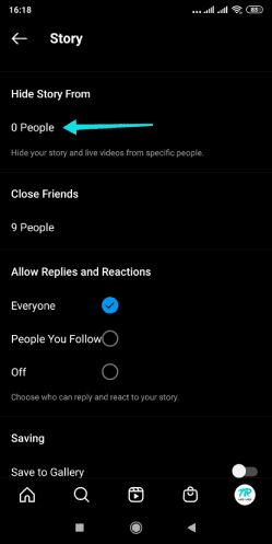 سوف تجد قسم إخفاء القصة من “Hide Story from”، أسفله مباشرة عدد الأشخاص الذين قمت بحجب عليهم رؤية قصصك على إنستقرام. إذا لم تقم بإخفاء ستوري مسبقاً فسوف يظهر لك 0 أشخاص “0People”. انقر على هذا الأخير.