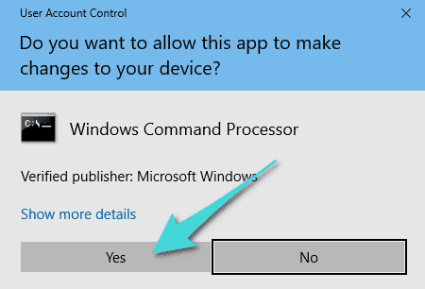سوف تظهر لك نافذة التحكم في حساب المستخدم من أجل تأكيد الدخول إلى موجه الأوامر كمسؤول. انقر على زر نعم “Yes”.