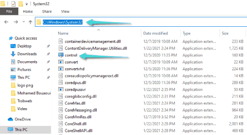 في شريط العنوان في الجزء العلوي للدخول إلى ذلك المسار. ابحث عن control في قائمة الملفات. سوف تجد العديد من الملفات وقد يصعب عليك العثور عليه سريعاً، لذلك اكتبه في خانة البحث في الجانب العلوي لكي يظهر لك مباشرة. انقر نقراً مزدوجاً على control.exe للدخول إلى لوحة التحكم.