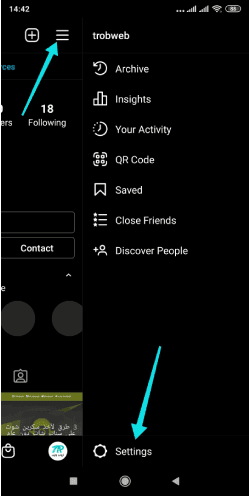 انقر على خيار الثلاث أشرطة في الجانب العلوي للكشف عن القائمة الجانبية، ثم حدد خيار الإعدادات “Settings” في الأسفل.