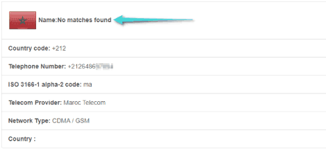 سوف يظهر لك إسم صاحب الرقم، إضافة إلى البريد الإلكتروني الخاص به إذا كان متاح، وأيظاً معرفة مزود خدمة الاتصالات التي يستخدمها. كما هو موضح في الصورة أدناه، قمت بإدخال رقم هاتفي وتم الكشف عن إسمي برمشة عين.