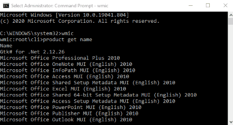 سوف ترى wmic: root \ cli> في النافذة، أي يمكنك الآن استخدام عمليات WMI. مباشرة قم بإدخال السطر التالي وانقر على زر إدخال في لوحة الفاتيح. (هذا السطر من أجل جلب أسماء البرنامج بالشكل الصحيح).