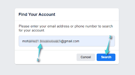 مباشرة سوف يُطلب منك إدخال رقم هاتفك أو عنوان البريد الإلكتروني المقترن بحسابك. أدخله ثم اضغط على بحث “Search”.