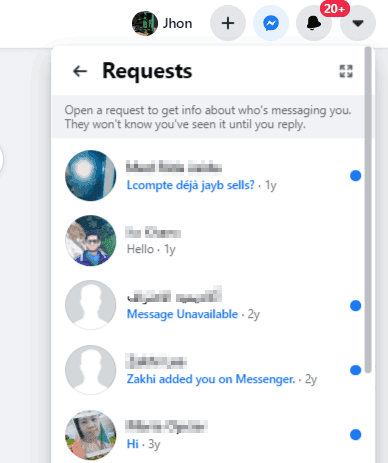 ضع في اعتبارك أنه عندما تقرأ رسالة ضمن طلبات الرسائل، فإن المرسل لن يعلم بذلك إلا بعد قبول الرسالة (الرد عليها).علاوة على ذلك، قد ترغب أيظاً في التعرف على كيفية إخفاء نشط الآن على فيسبوك ماسنجر.