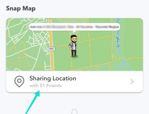 بعد أن قمت بتغيير إعدادات مشاركة موقعك على الخريطة، الآن يمكنك العودة إلى قسم البروفايل الخاص بك، ثم مرر للأسفل حتى تجد قسم Snap Map. في الأسفل سوف ترى عدد الأصدقاء الذين تشارك معهم موقعك الجغرافي. ومع ذلك، نحن اخترنا مشاركة ذلك مع جميع الأصدقاء عمداً من أجل معرفة عدد المتابعين لدي في حسابي سناب شات. كما هو موضح في الصورة أدناه، لدي حوالي 51 متابع أو صديق على سناب شات.