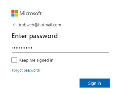 سوف ترى صفحة لإدخال كلمة المرور الخاصة بعنوان هوتميل الذي أدخلته. أدخل كلمة السر ثم انقر على زر تسجيل الدخول “Sign in”.