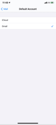 - اختر حساب البريد الإلكتروني من أجل تعيينه كحساب افتراضي، إما الإيميل الخاص بك على iCloud، أو جيميل الخاص بك.