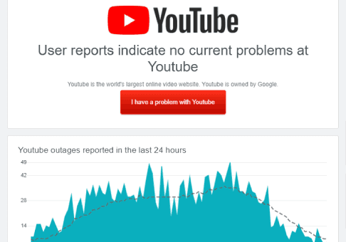 قبل الشروع في إجراء تعديلات على الايفون، دعنا أولاً نتأكد من حالة خوادم اليوتيوب فمن الممكن أن تكون معطلة. ادخل إلى موقع Downdetector ثم اكتب في مستطيل البحث “Youtube”. سوف يظهر لك عما إذا كانت خوادم اليوتيوب تعمل أم لا.