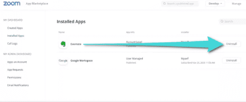 إلغاء تثبيت التطبيقات المثبتة على برنامج Zoom