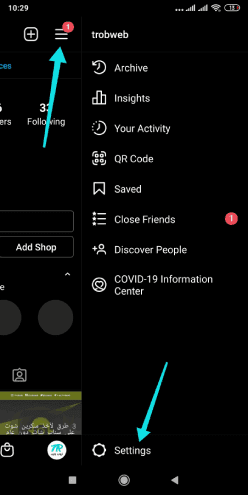 للبدأ، افتح تطبيق Instagram على جهازك الاندرويد أو الايفون، ثم ادخل توجه إلى قسم البروفايل الخاص بك. بعد ذلك، انقر على خيار الثلاث أشرطة التي تظهر على الجانب العلوي للكشف عن القائمة الجانبية.