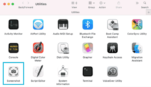 سوف نحتاج إلى فتح أداء Screenshot المدمجة على الماك، وذلك عبر الخطوات التالية: