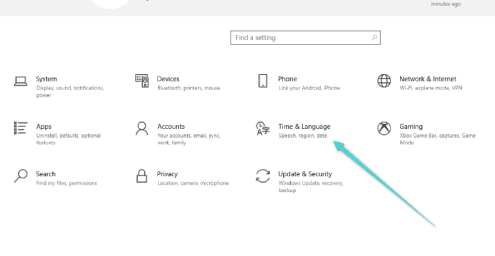 - انقر على قسم الوقت واللغة “Time & Language”.