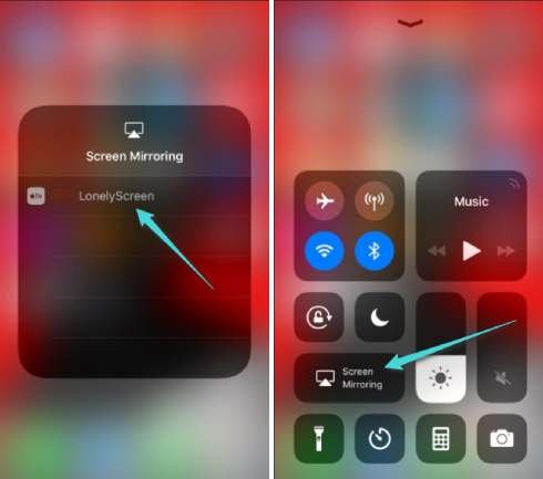سيتم عرض “LonelyScreen” أو أي إسم قمت بتعيينه على أداة LonelyScreen على قائمة الأجهزة المتصلة في Airplay أو انعكاس الشاشة “Screen Mirroring”. قم بتحديده.