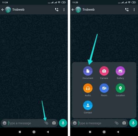 بجانب خانة كتابة نص الرسالة، انقر على أيقونة دبوس المكتب كما هو مبين أدناه. ثم بعد ذلك مباشرة اضغط على خيار مستند “Document”.
