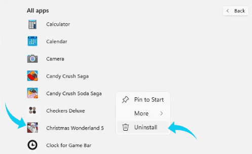 حذف البرامج في ويندوز 11 من خلال قائمة إبدأ