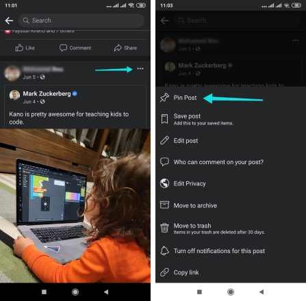 كيفية تثبيت منشور على صفحة الفيسبوك