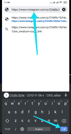 الآن، اخرج من تطبيق Instagram، ثم افتح متصفح Google Chrome على جهازك. ضمن المتصفح، قم بلصق الرابط المنسوخ في شريط عناوين URL.