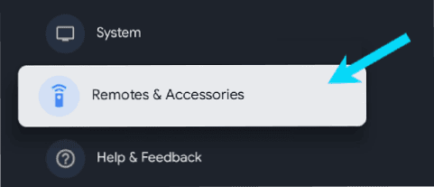 ضمن صفحة الإعدادات، مرر نحو الأسفل واضغط على خيار أجهزة التحكم عن بعد والملحقات “Remotes & Accessories”.