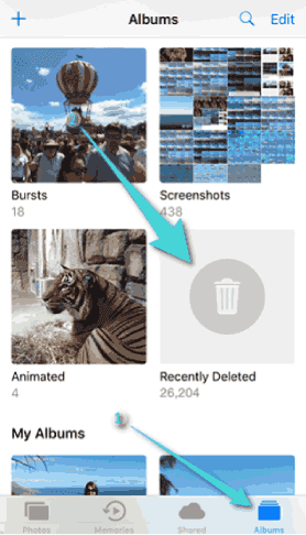 - انقر على خيار المحذوفة مؤخراً “Recently Deleted”.