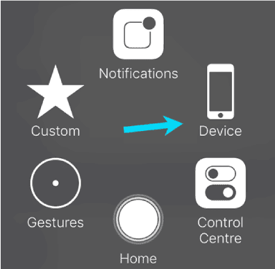 سوف ترى مربع رمادي على الشاشة، ويشمل هذا المربع خيار لتمكين أو تعطيل الوضع الصامت في جهازك الايفون إلى جانب بعد الخيارات الأخرى. انقر على المربع، ثم حدد خيار الجهاز “Device” في القائمة التي ظهرت.