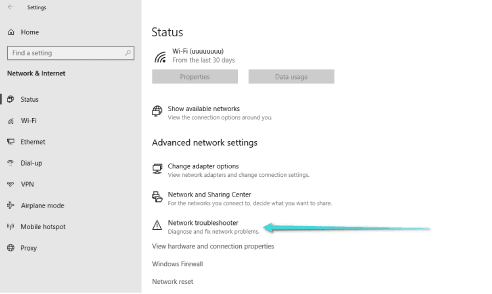 - مرر نحو الأسفل وانقر على خيار مستكشف أخطاء الشبكة ومصلحها “Network troubleshooter”.