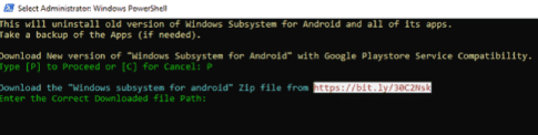 الآن سوف يتم استبدا نظام ويندوز الفرعي للاندرويد بحزمة جديدة تتوفر على متجر جوجل بلاي. أدخل “P” من أجل المتابعة.