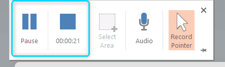 سوف يبدأ تسجيل الشاشة. ويمكنك في أي وقت إيقاف التسجيل مؤقتاً عبر النقر على خيار إيقاف مؤقت “Pause”، واستئناف التسجيل بعدها عبر النقر على خيار تشغيل “Play”. عند الانتهاء من التسجيل، انقر على زر إيقاف “Stop”.