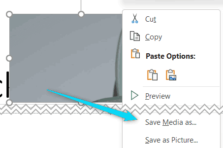 بعد الانتهاء من التسجيل، سوف يظهر تسجيلك في شريحة PowerPoint. يمكنك تنزيله عبر النقر عليه بزر الماوس الأيمن، ثم انقر على حفظ الوسائط بإسم “Save Media As”.