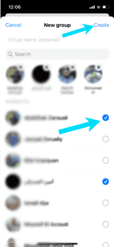 بعد تحديد أعضاء المجموعة، انقر على زر إنشاء “Create” الموجود في الجانب العلوي.